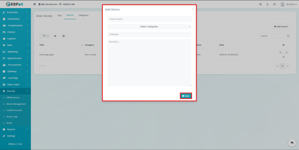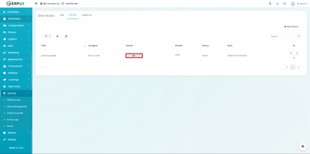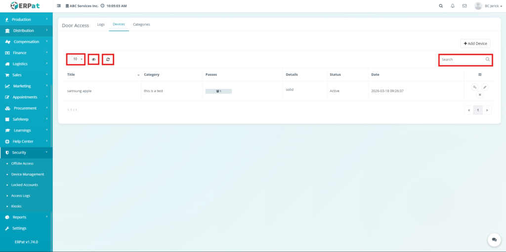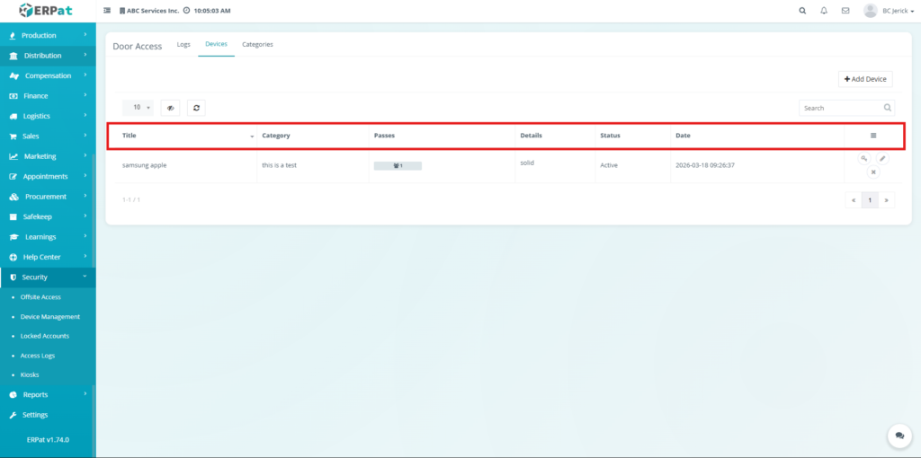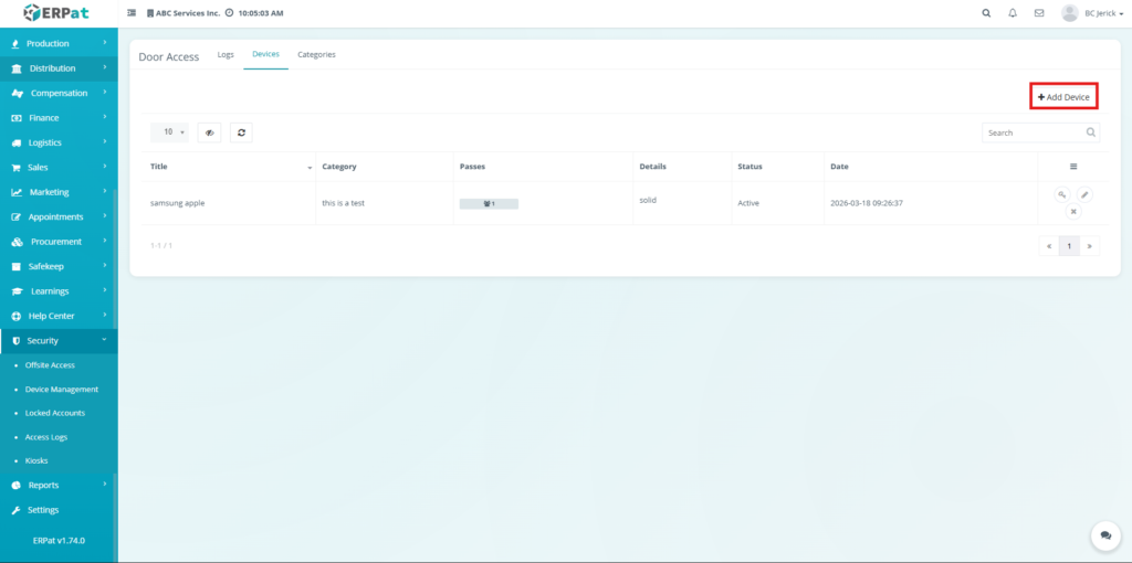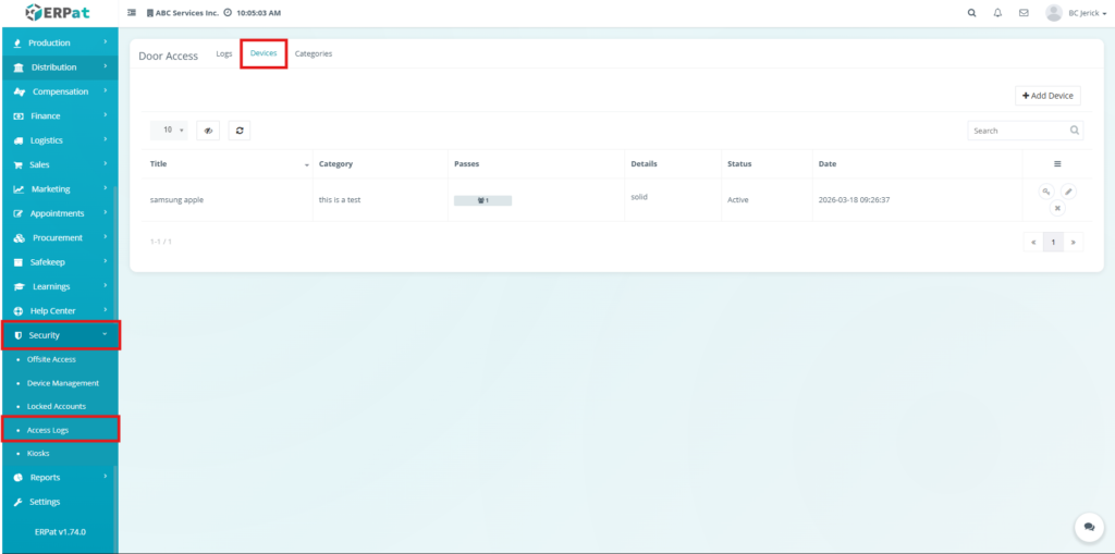 This module provides a centralized system for recording access logs, managing door access devices, and categorizing devices for better organization and filtering. It ensures visibility, accountability, and security across all access-related operations.