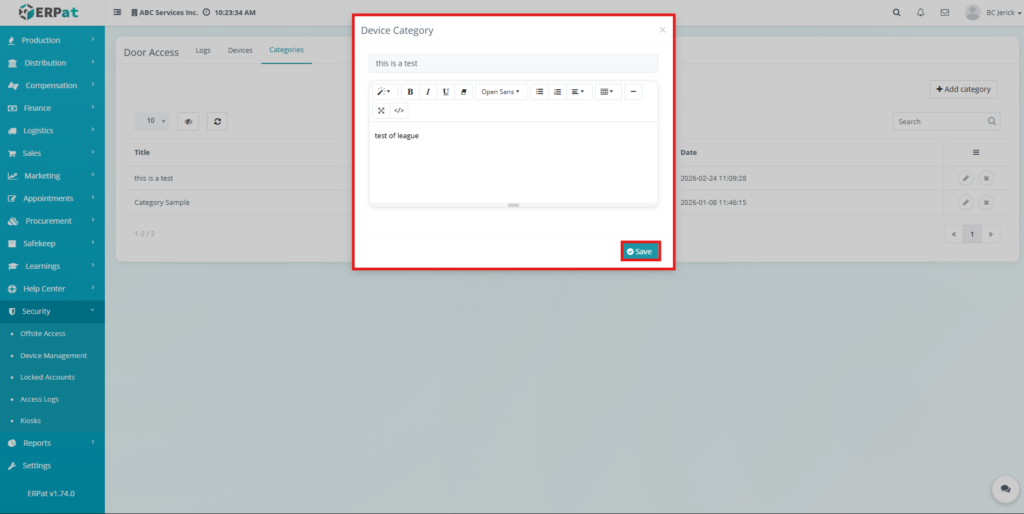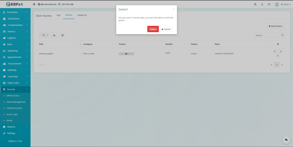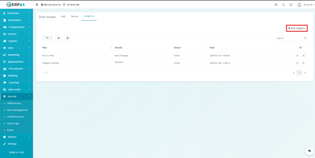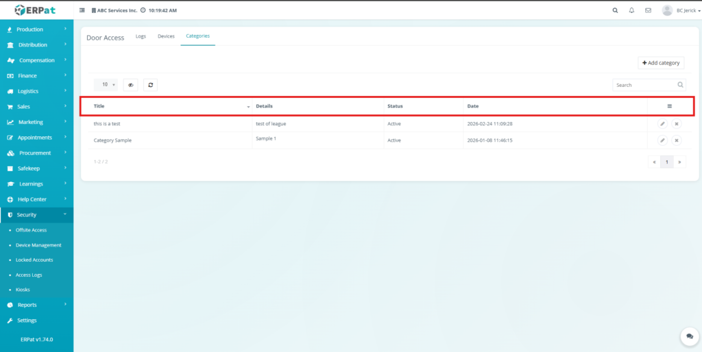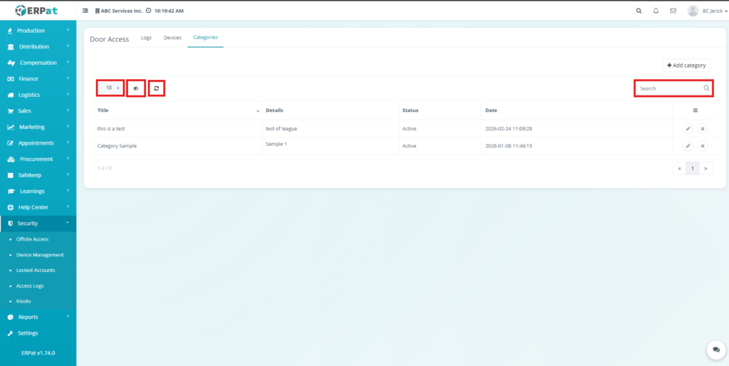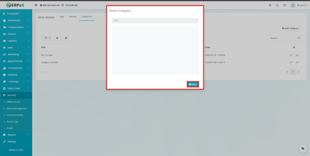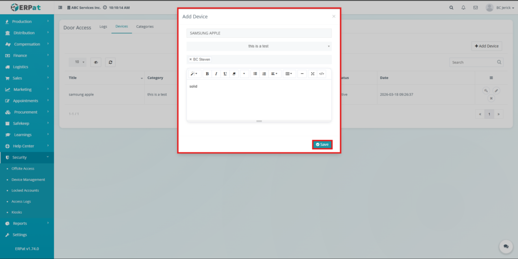 This module provides a centralized system for recording access logs, managing door access devices, and categorizing devices for better organization and filtering. It ensures visibility, accountability, and security across all access-related operations.