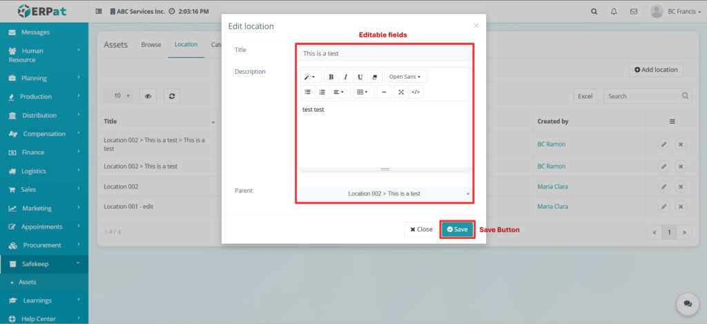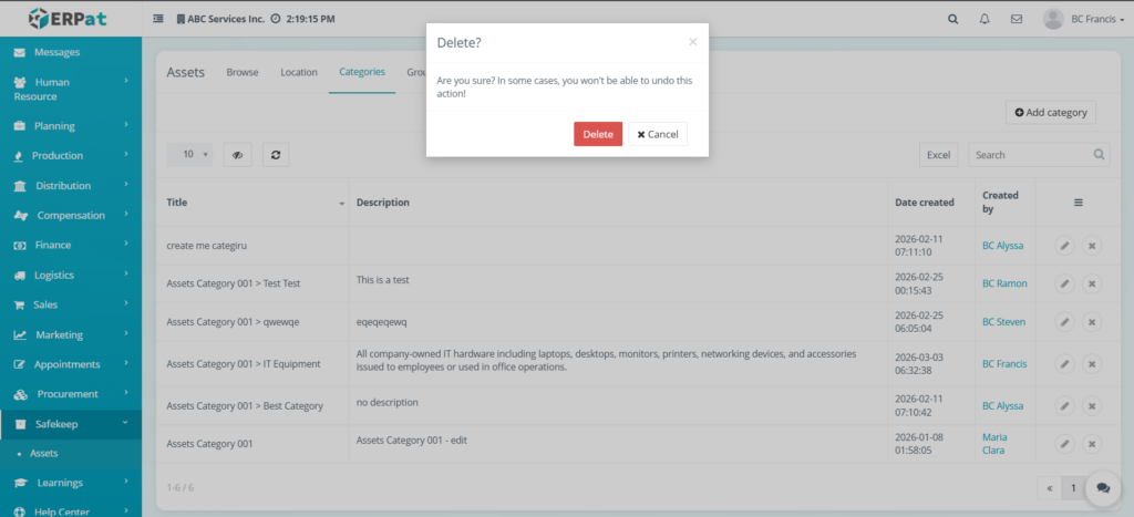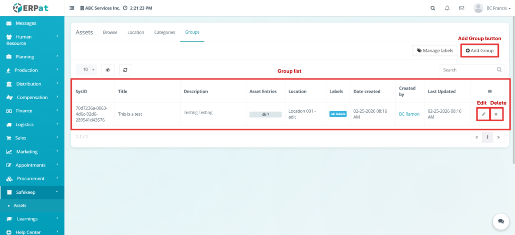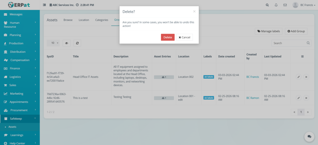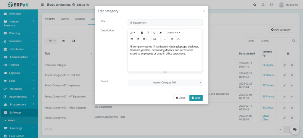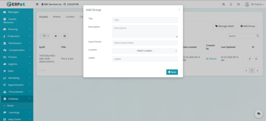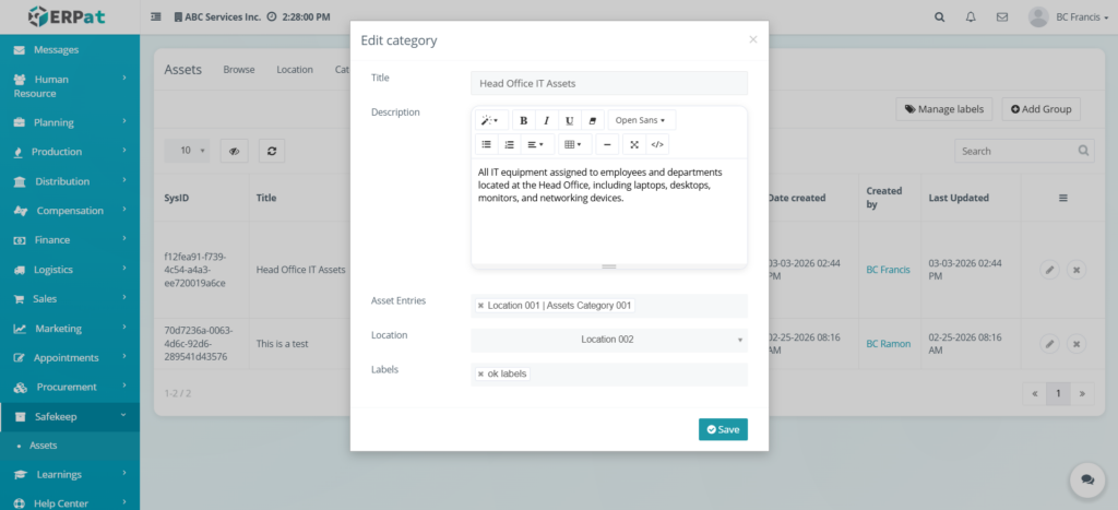 Last Updated: [March 03, 2026] Module Owner: Safekeep IS – ERPat System