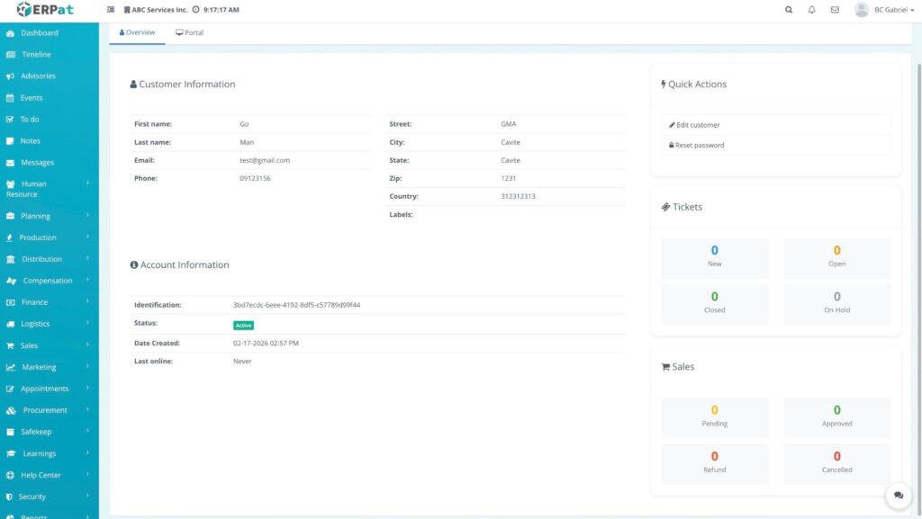 The Customer Module serves as a centralized hub for managing individual customer records within the Sales department. It is designed to track personal identities, communication details, and account lifecycles, ensuring that customer data is organized and easily accessible for relationship management and reporting.
