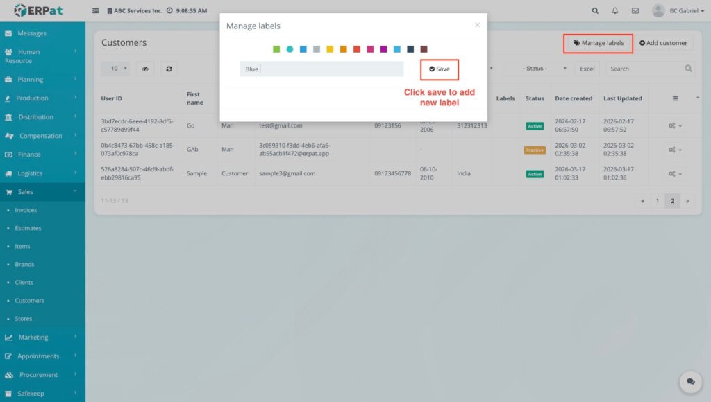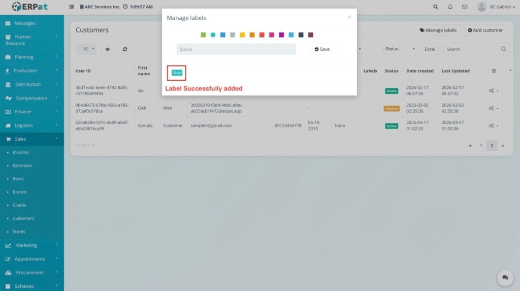 The label is added to the list and is now available to be used in the system.