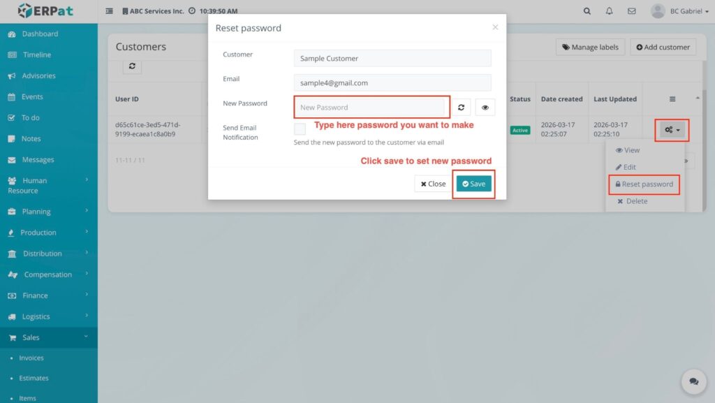 - Detailed Procedures: To know more about the specific fields and functions, please refer to Steps for Editing a Customer and Steps for Resetting a Customer Password.