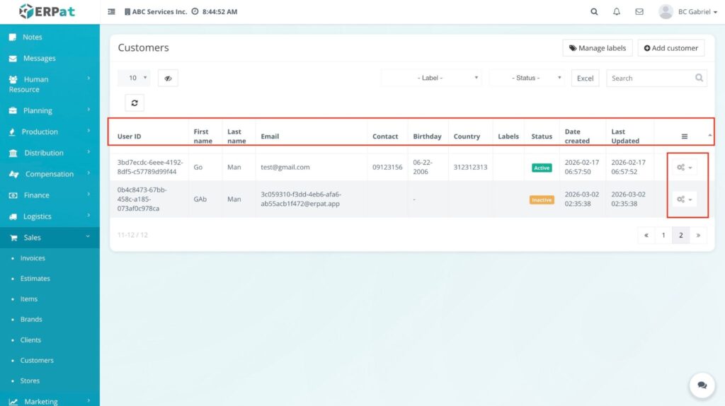 - Locate the specific customer in the listing and click the Actions (⚙️) gear icon.