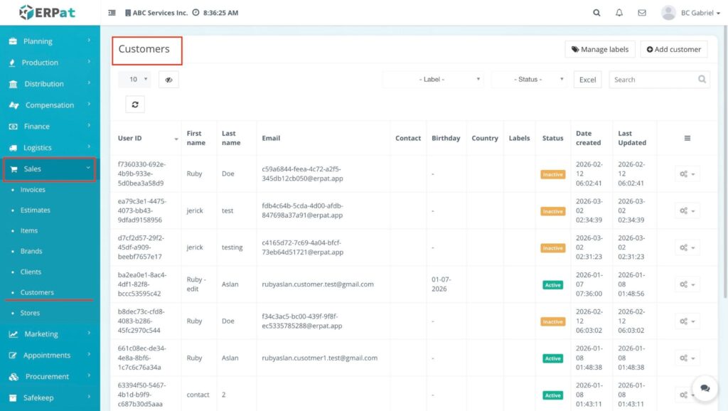 - Navigate to the Sales sidebar and select Customers.