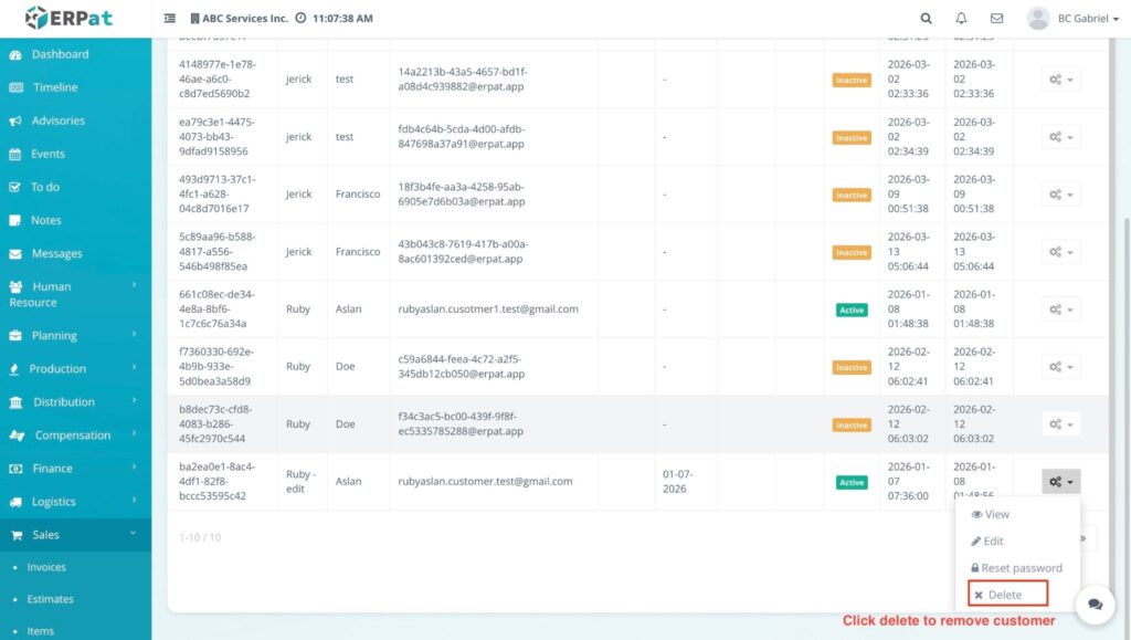 - Locate the customer record you wish to remove from the listing.