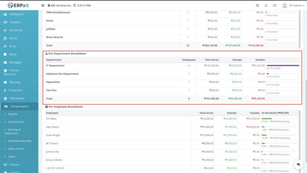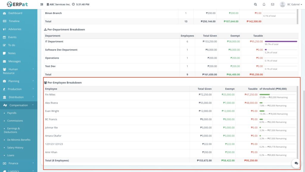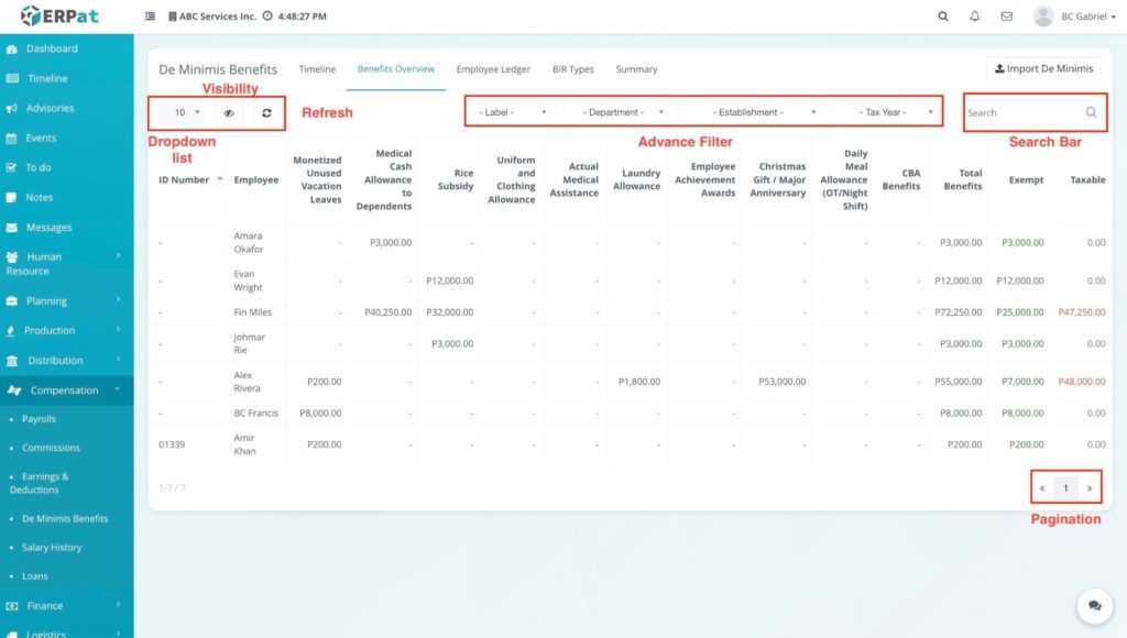 - Data Integrity: Regularly check the Total Taxable box to identify any benefit distributions that have exceeded BIR ceilings before finalizing payroll.