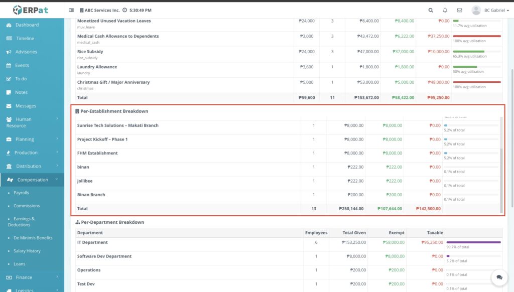 - Establishment: Select a specific office branch or physical site location to view regional benefit distributions.