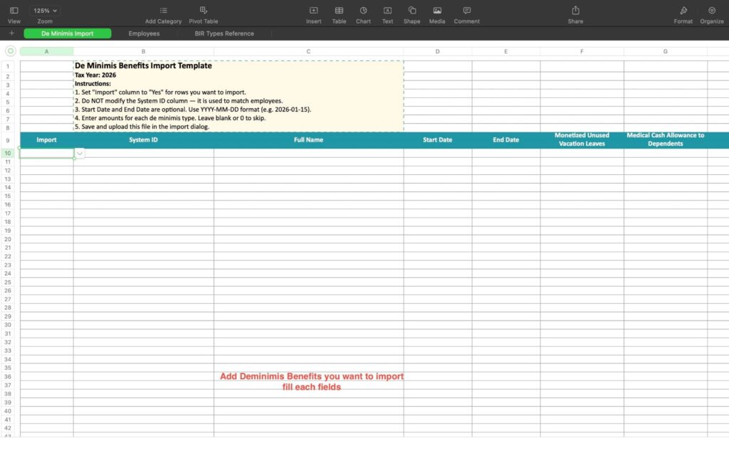 Steps to Import De Minimis Benefits #