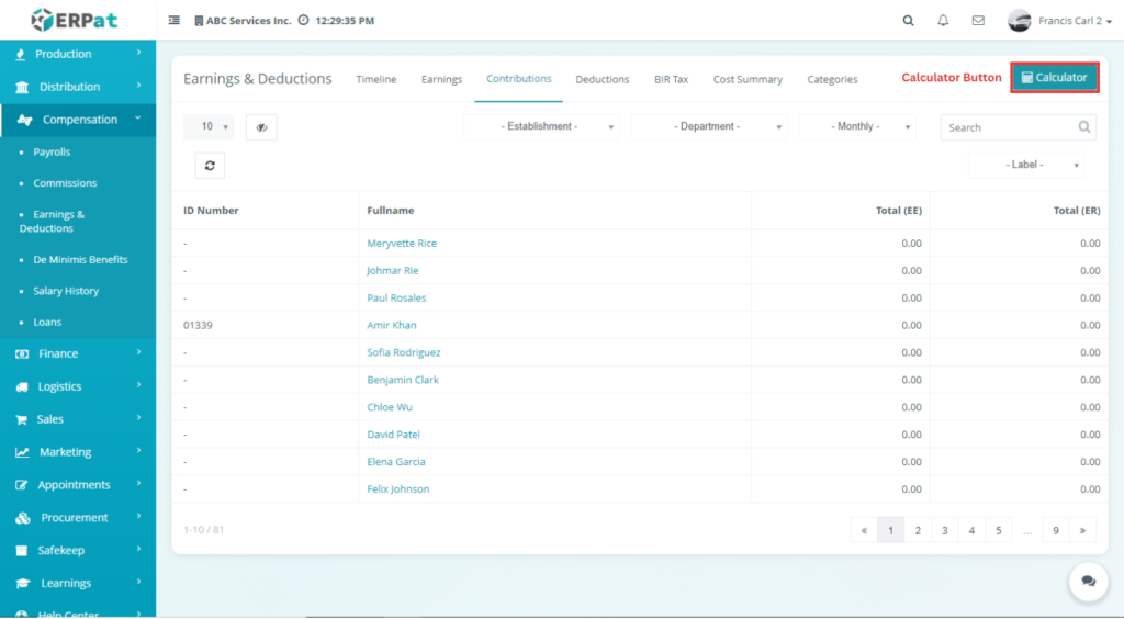 This section manages government-mandated contributions that are deducted from the employee and shared with the employer. These contributions include programs such as SSS, PhilHealth, and Pag-IBIG. It allows users to view and manage contribution records that will be used in payroll computation and tax calculation.
