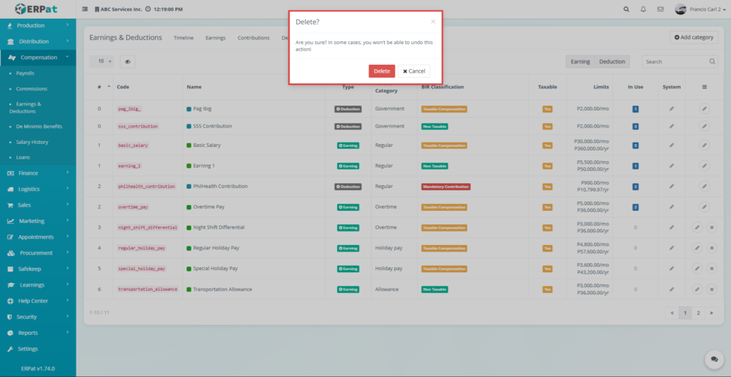 - Only users with proper permissions (e.g., HR or Payroll Administrators) can create, edit, or delete earnings and deductions