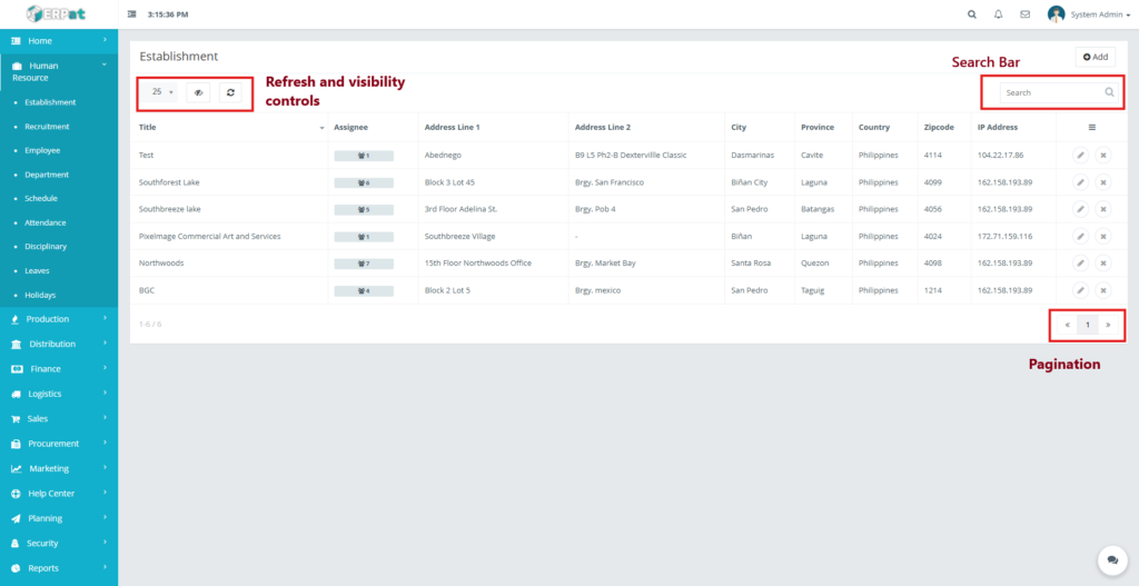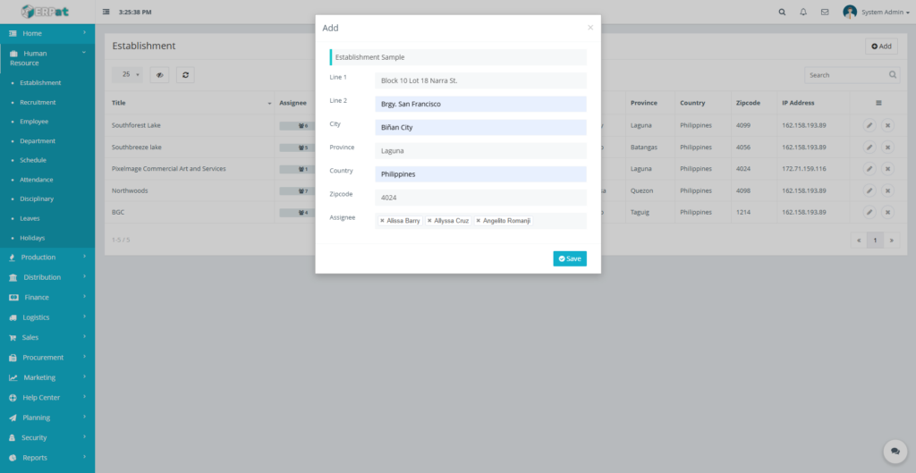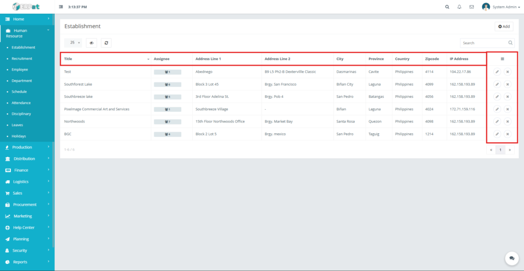 The Establishment Module is used to manage and maintain records of company establishments, branches, sites, or work locations. These establishments serve as reference points for employee assignments, attendance tracking, scheduling, and other HR-related processes.