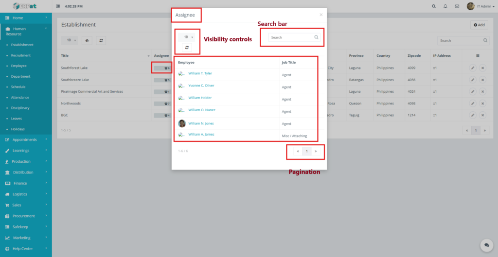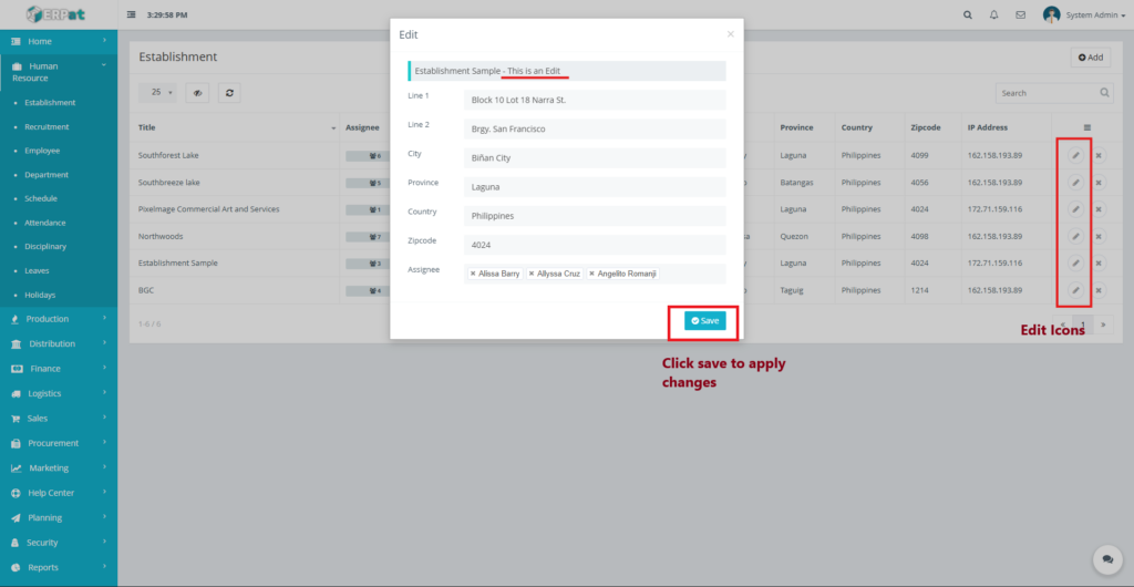 • Only authorized HR or Admin roles can add, edit, or delete establishments.