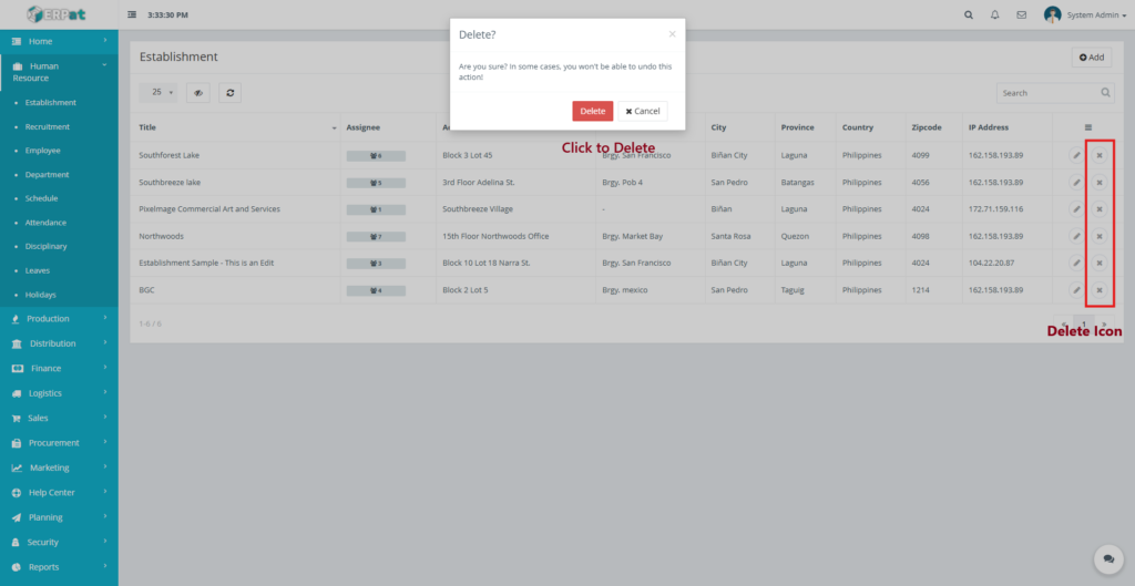 Steps to Delete an Establishment #