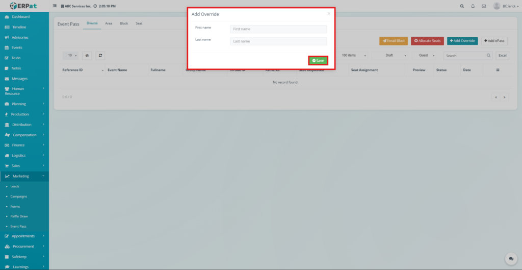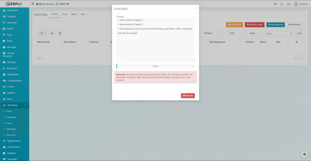 All activities performed within the Event Pass module are recorded within the ERPat system logs to ensure transparency and operational accountability.