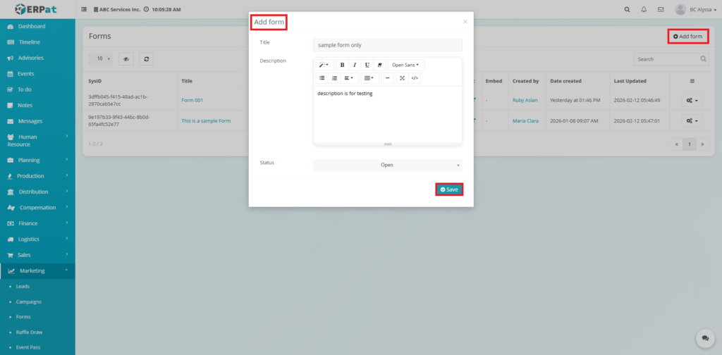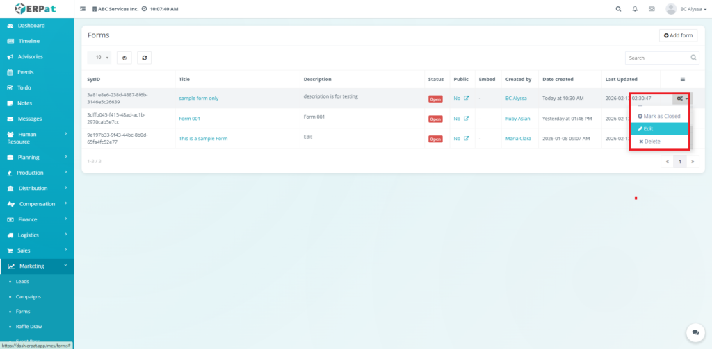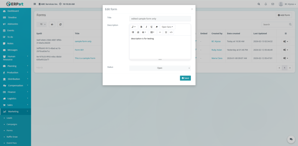Last Updated: [February 13, 2026] Module Owner: Marketing – ERPat System