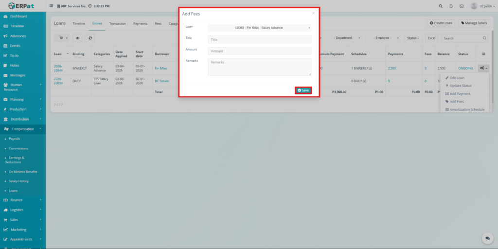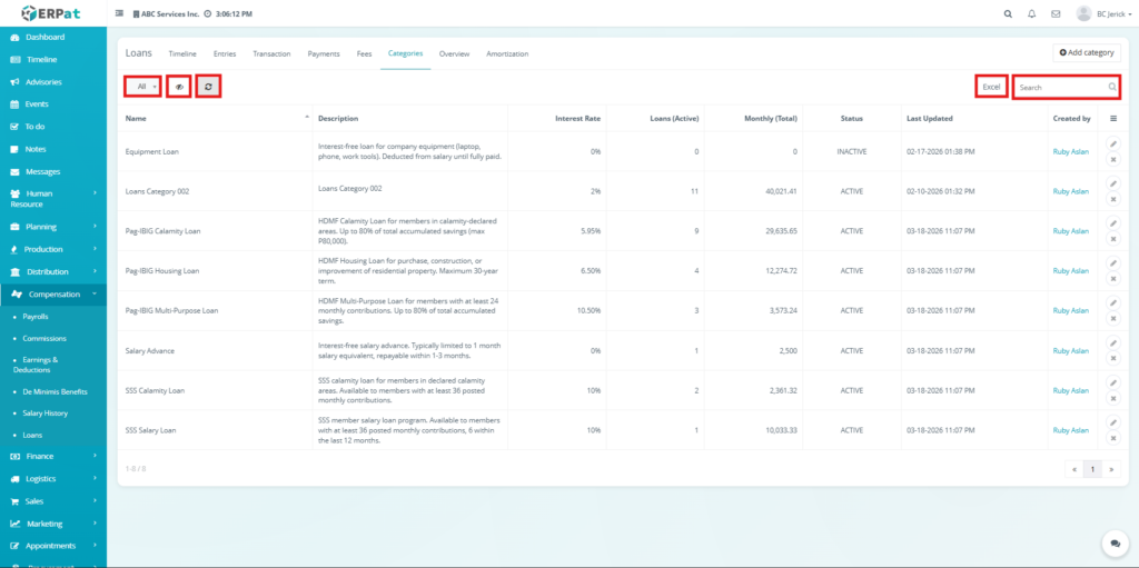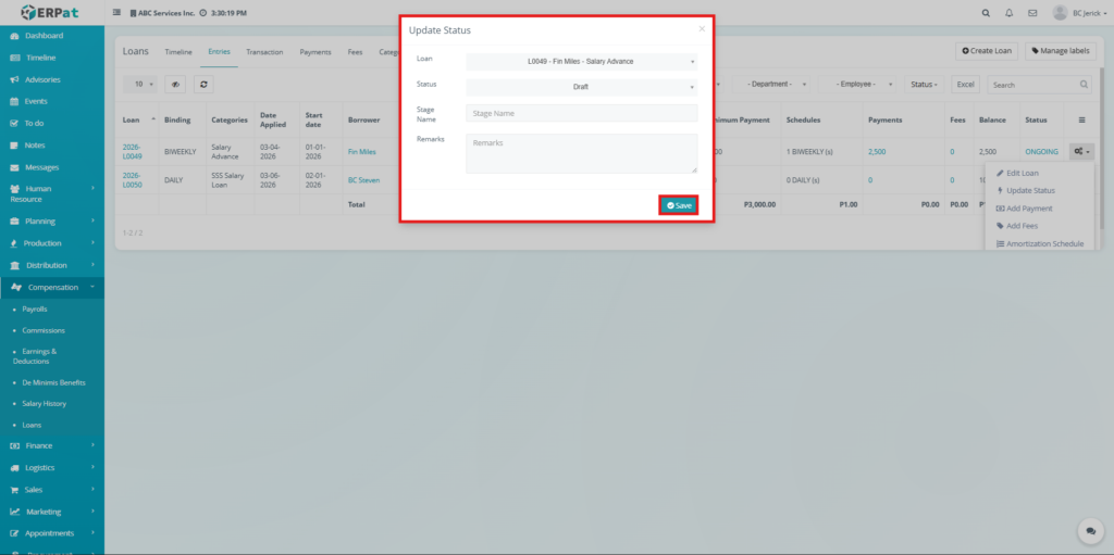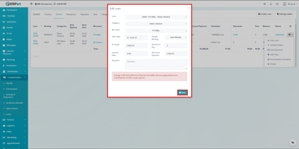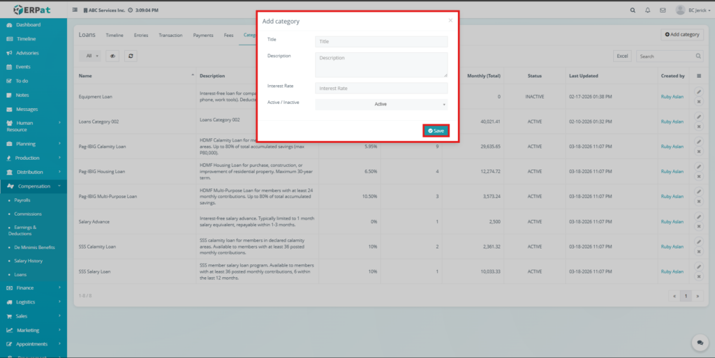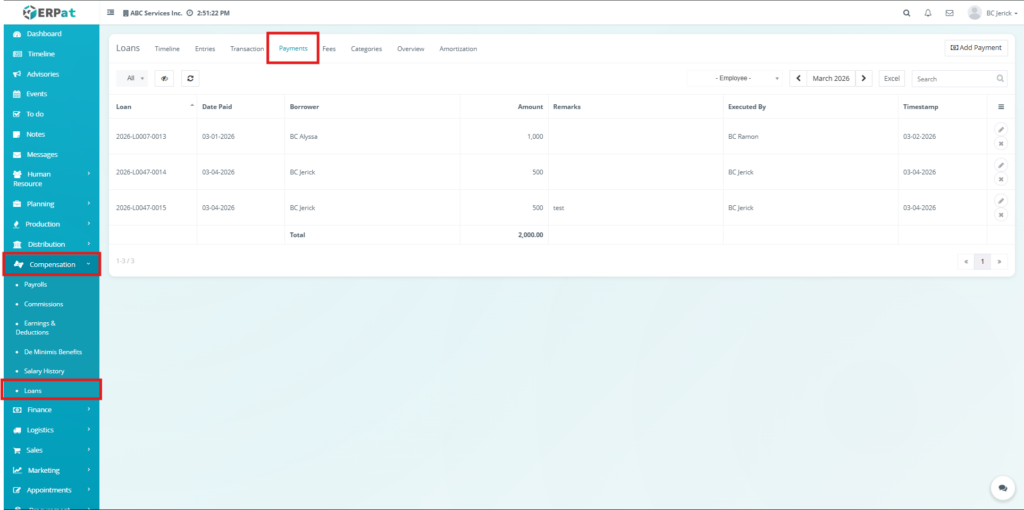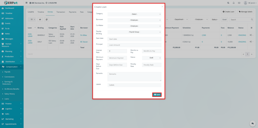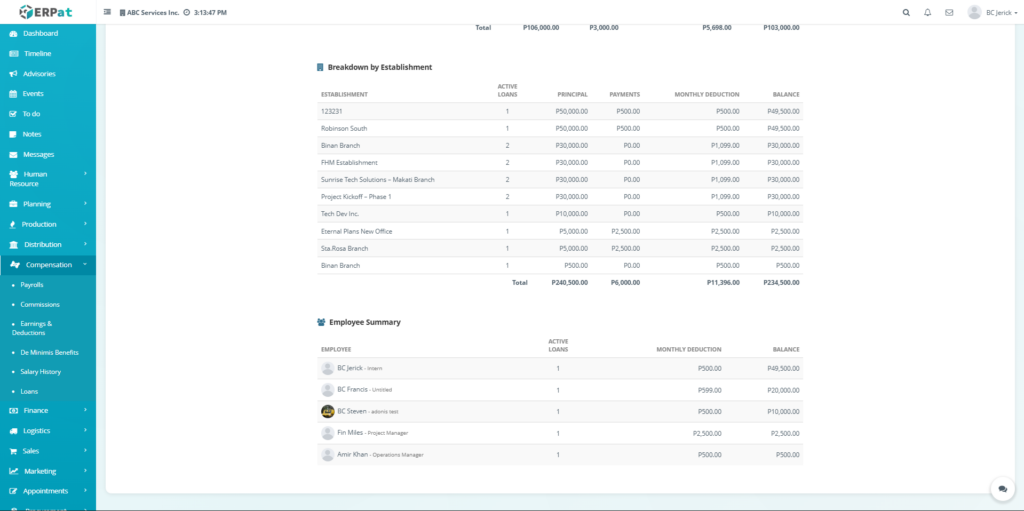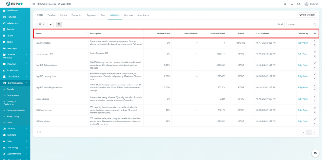 The Loan Module in the ERPat system is used to manage, track, and monitor employee loans within the organization. It provides a complete solution for handling loan creation, repayment tracking, categorization, and reporting.