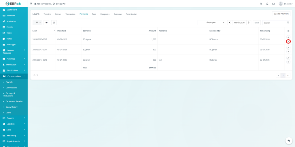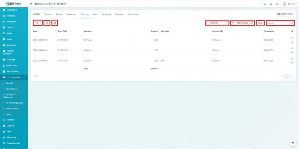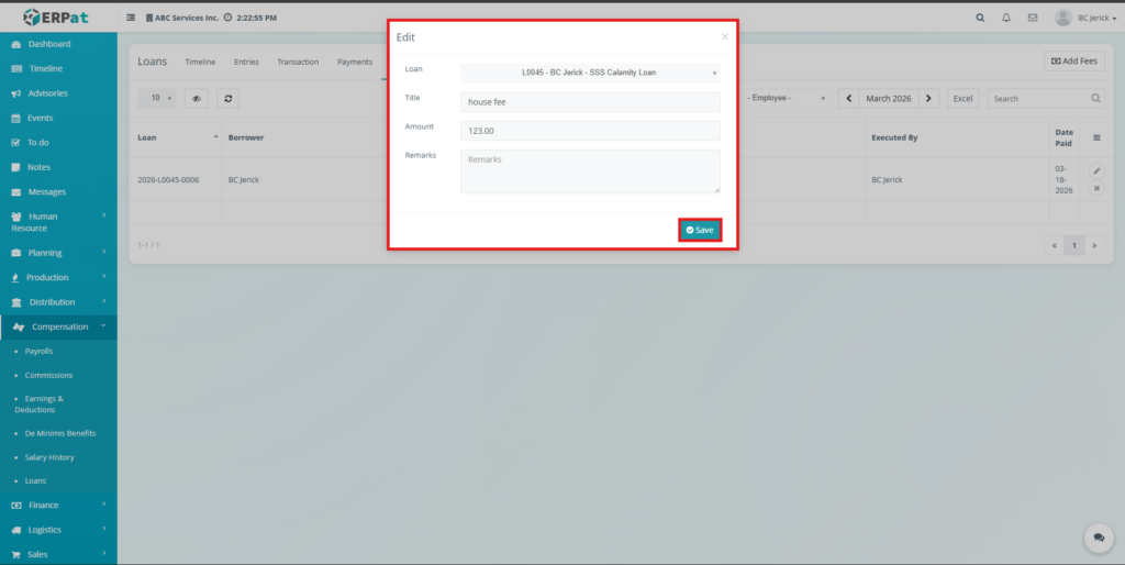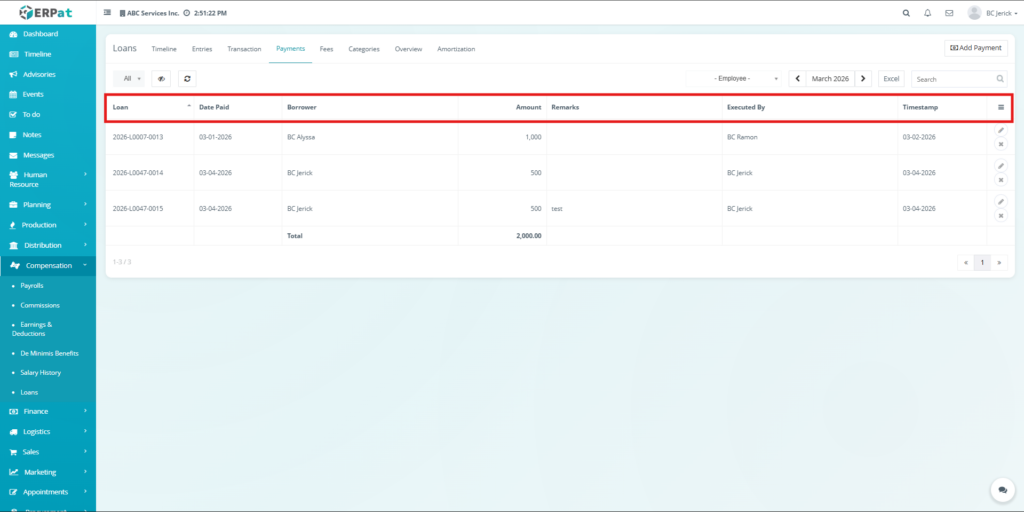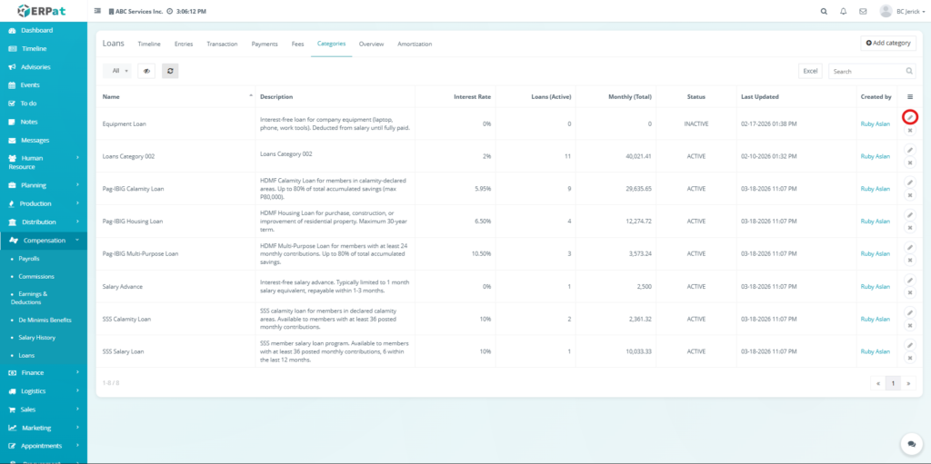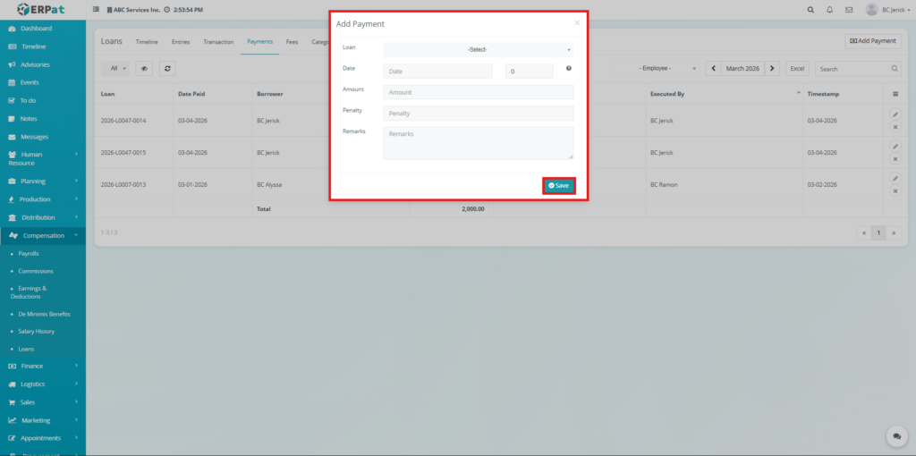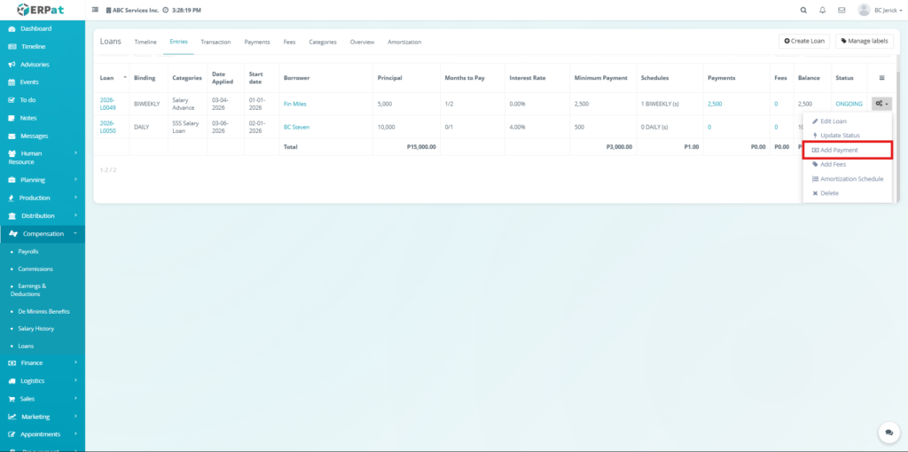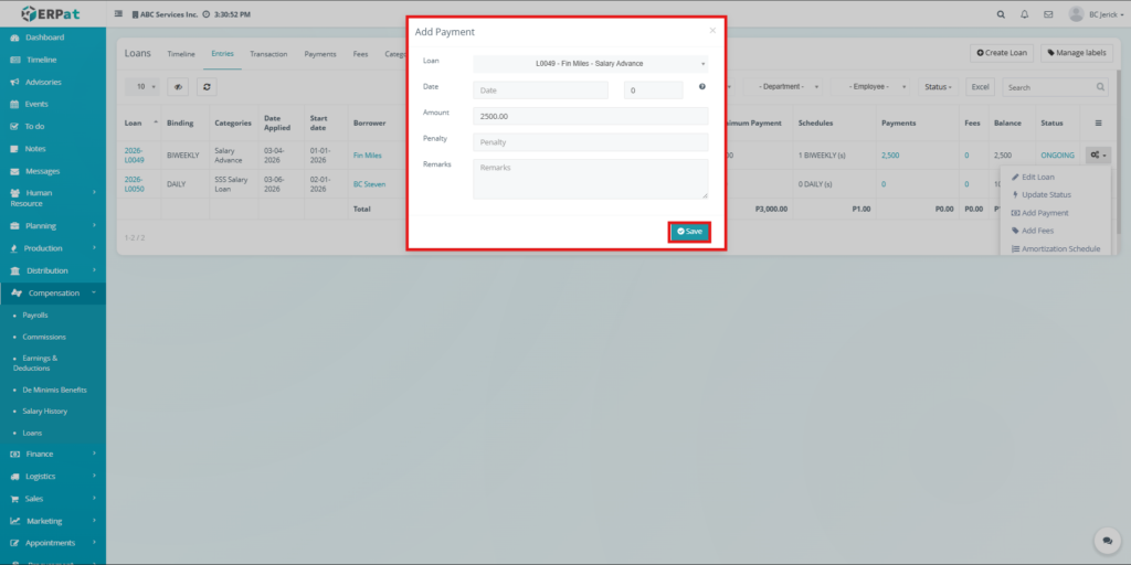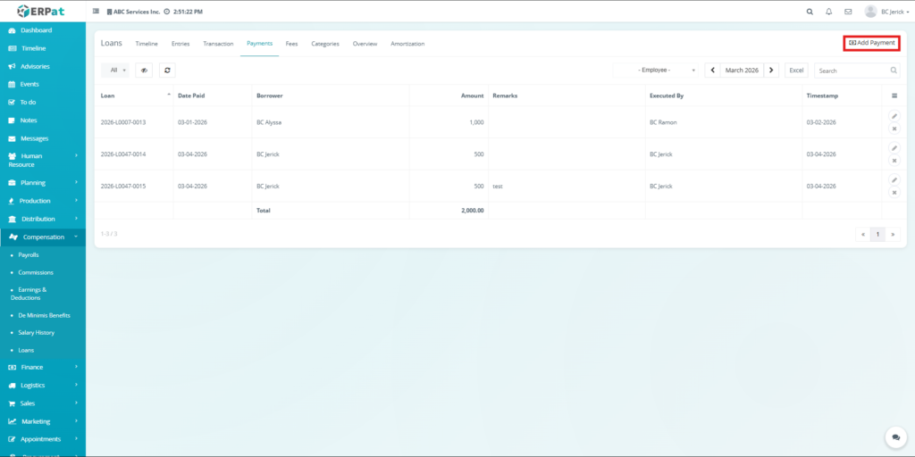 The Loan Module in the ERPat system is used to manage, track, and monitor employee loans within the organization. It provides a complete solution for handling loan creation, repayment tracking, categorization, and reporting.
