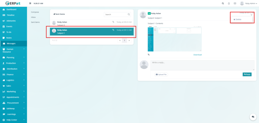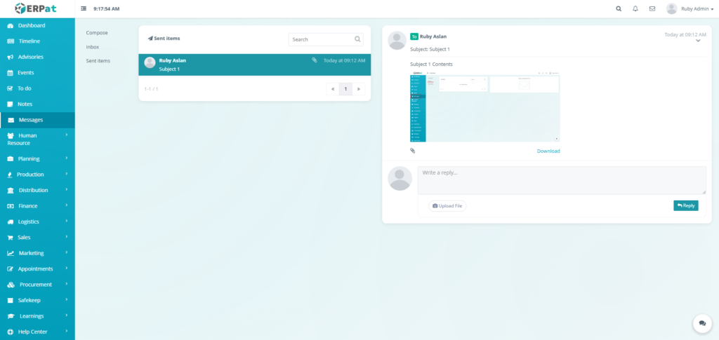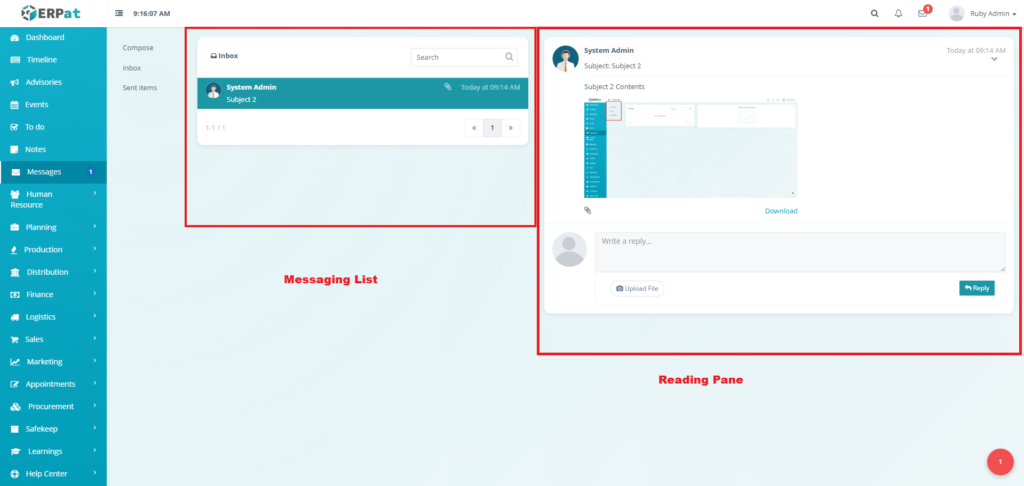 The Messages Module provides a secure, internal communication platform within the ERPat System, allowing users to send and receive private correspondence. It serves as a centralized hub for peer-to-peer messaging, ensuring that work-related discussions and file sharing remain within the organization’s secure environment.