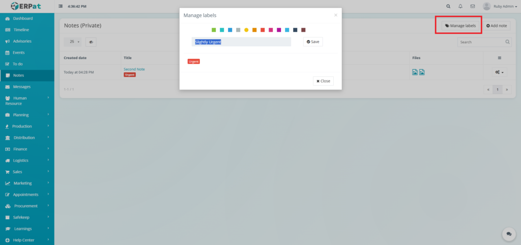 - Click the Save button to add the label.