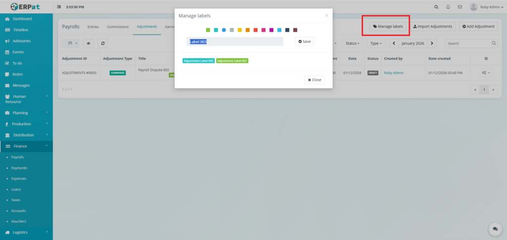 Steps for Adding Label for Adjustments #