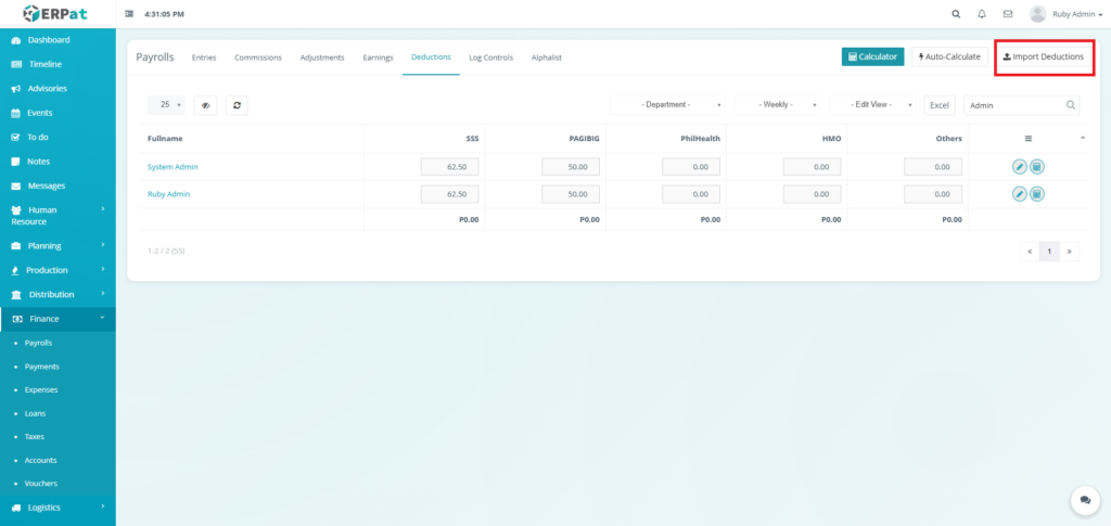 - Click the “Import Deductions” button