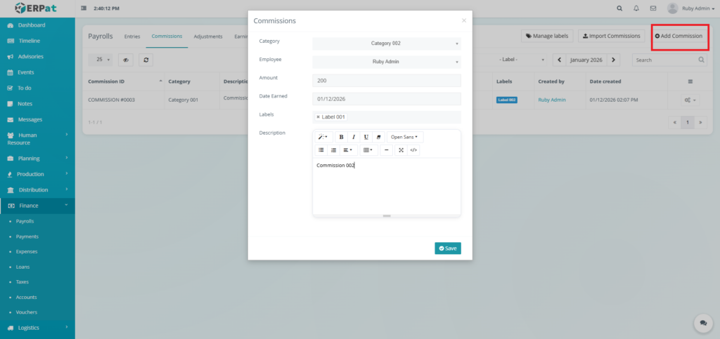 - Clear Descriptions – Include sufficient detail in commission descriptions for audit purposes