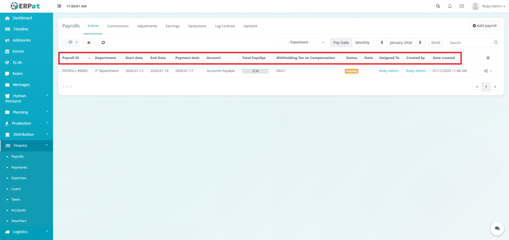 - Created By – User who created the payroll entry