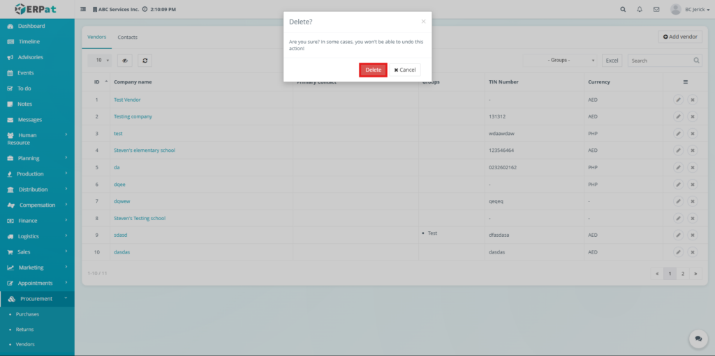 • Avoid deleting vendor records that may be required for procurement history or auditing purposes.