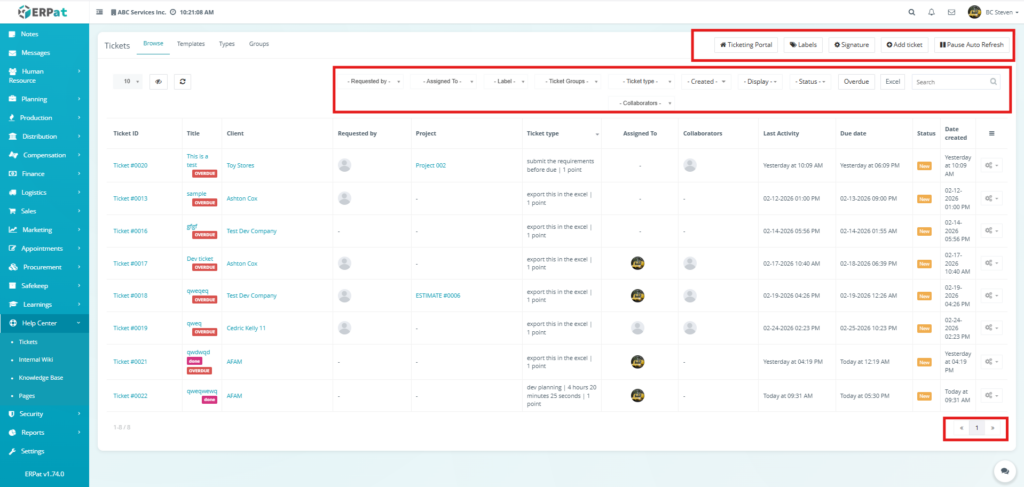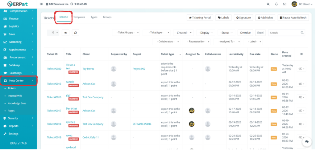 - You will be directed to to the Tickets – Browse page displaying all tickets records.