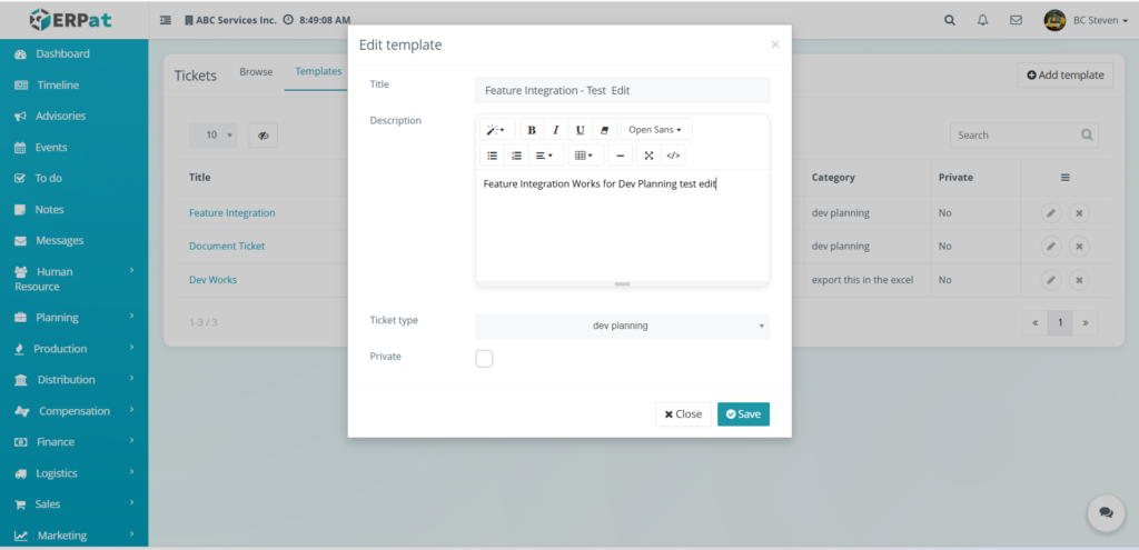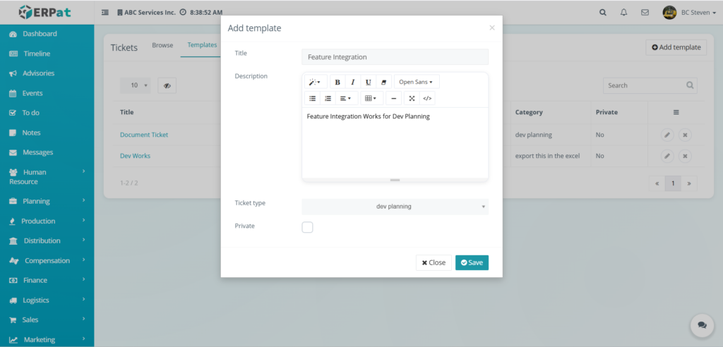 - Template Management for creating standardized, reusable ticket formats for recurring tasks.