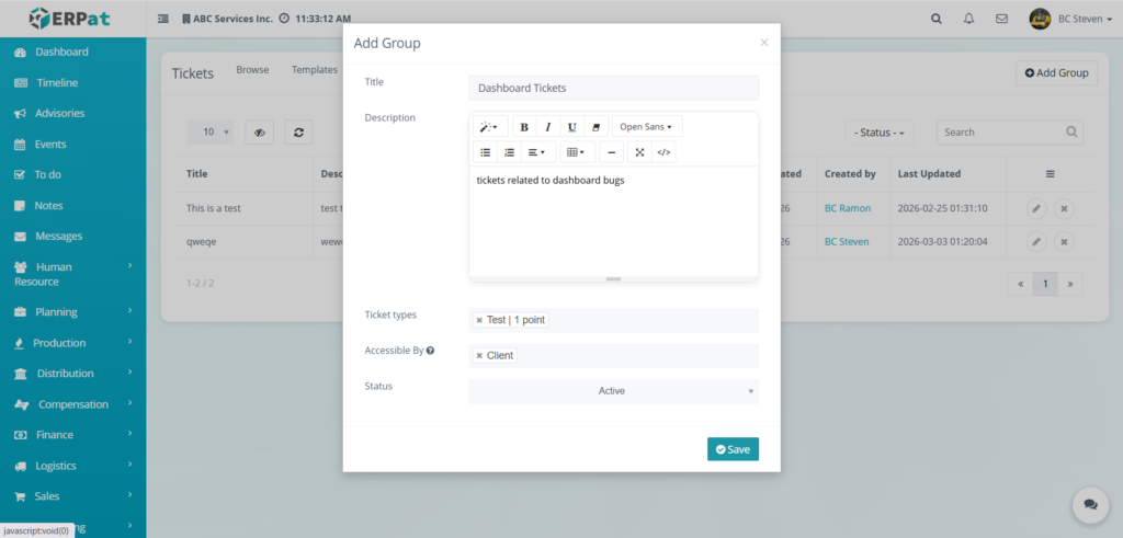 - Title – Name of the ticket group (e.g., Support Team, Dev Group)