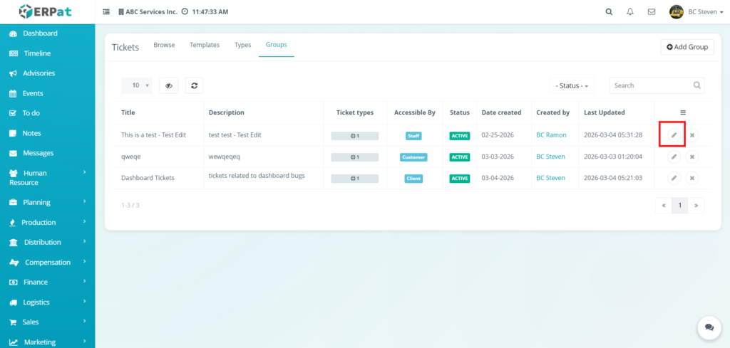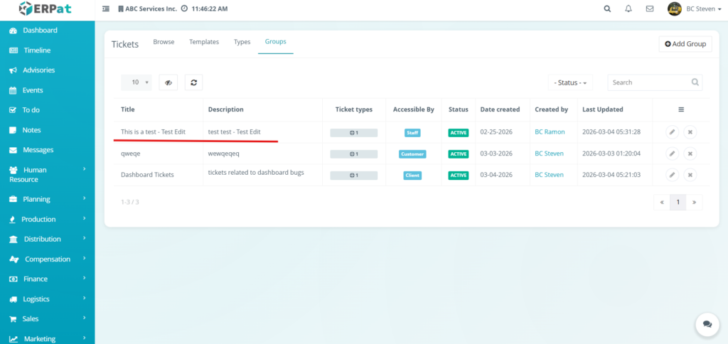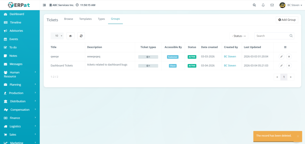 - Avoid Deleting Active Groups – Instead of deleting, set a group to “Inactive” if it is no longer needed to preserve historical ticket data for reporting.