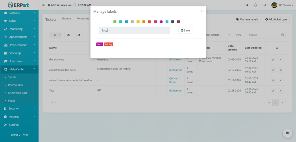 Last Updated: [March 6, 2026] Module Owner: Help Center IS – ERPat System