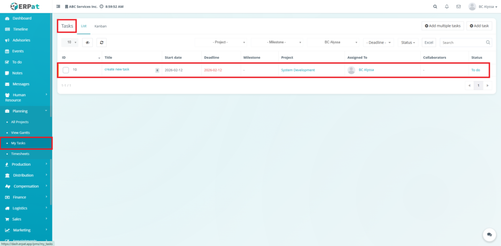 - My Tasks